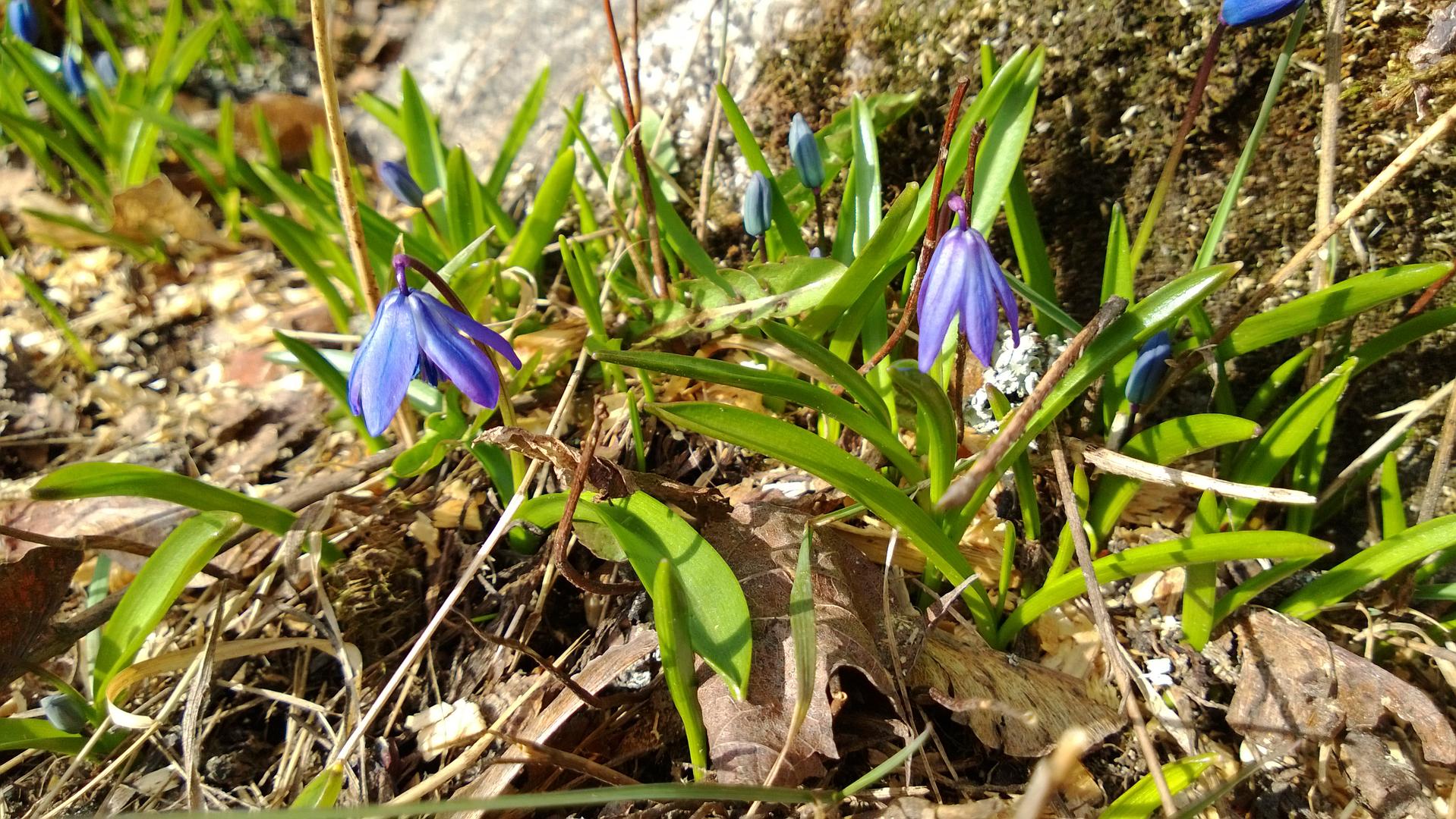Västäräkki oli nurmikolla eilen ja joku ruskeahko perhonenkin liihoitteli tänään. Pihapiirissä asuva mustarastas tuli jo reilu viikko sitten tutkimaan evästilannetta lintulaudan alle.