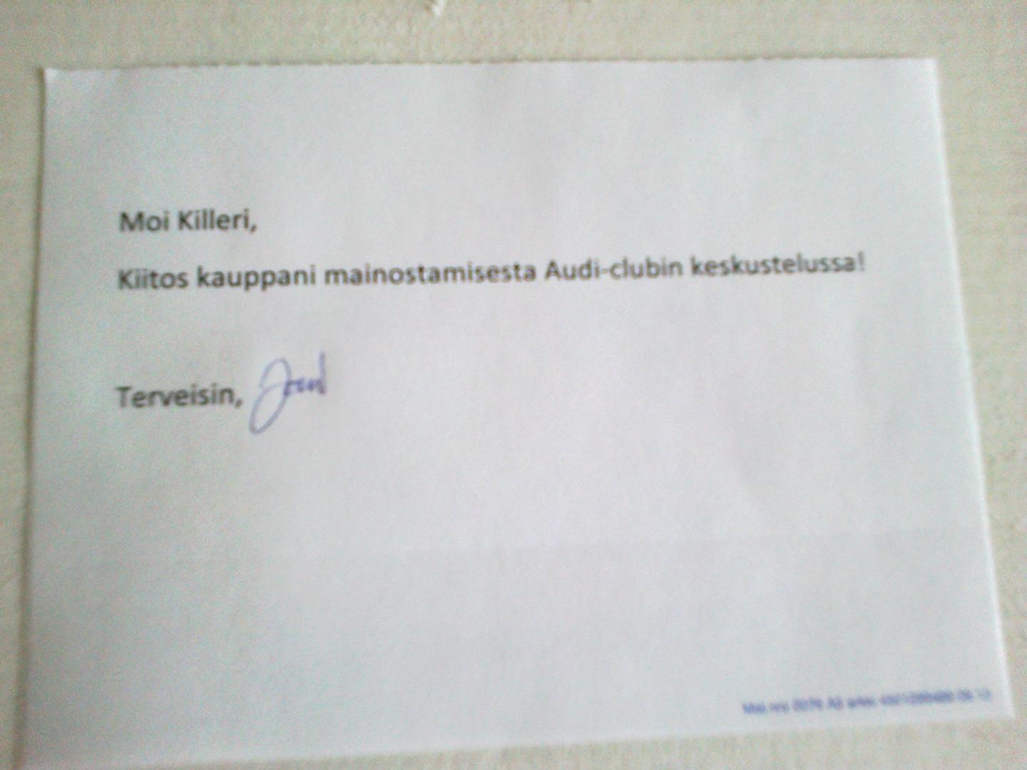 Avasin paketin ja oli pieni ylläri jossa luki Moi Killeri, olin että what the heck?!