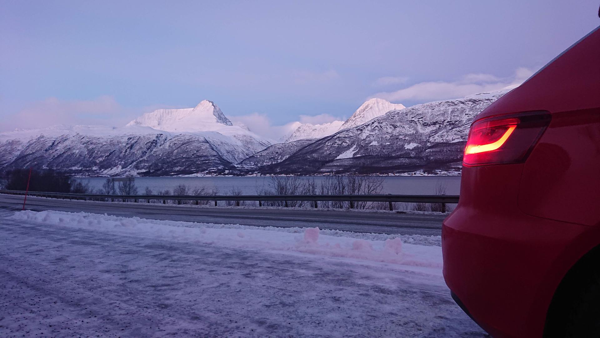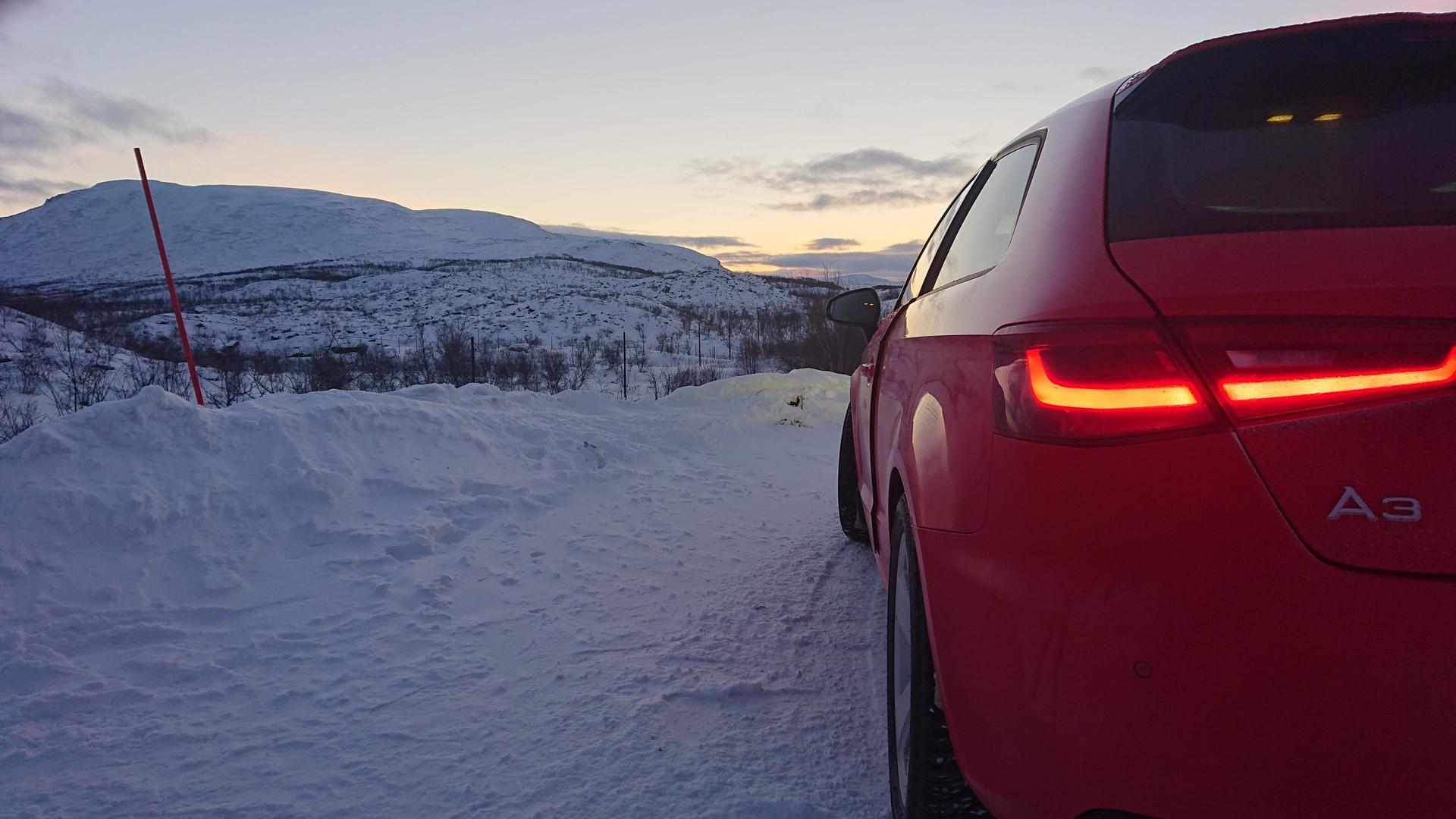 Tulipahan käytyä vähän ajelulla tällä viikolla; pikkusen vajaa 3000km tuli mittariin, kun kävi E8:n pohjoispäässä kääntymässä. Onneksi haldex tuli kuntoon juuri ennen reissua, koska käyttöä sille oli jokseenkin vaihtelevissa olosuhteissa. Lähtiessä lämpötila oli juuri nollan alapuolella ja Tampereelta eteenpäin ajeltiin aika pitkään kunnon loskavellissä, sekä myöhemmin samana päivänä satoi vielä pitkät pätkät alijäähtynyttä vettä. Pohjois-Norjassa sai sitten nauttia nollan molemmin puolin heiluvan lämpötilan ja lumisateen maustamaa ajokeliä kohtuullisen jyrkkiä mäkiä ajellessa. Suurin osa reissusta mentiin kuitenkin aika ideaalikeleissä: pakkasta n. 10 astetta eikä sadetta. Tiestö oli myös yllättävän hyvässä kunnossa. Käsivarrentiellä oli Kilpisjärveä lähestyessä kilometrikaupalla nimismiehenkiharaa ja pari ullatushyppyriä, joissa olisi varmaan tuota sport-alustallista matalammalla vehkeellä ollut öljypohja vaarassa.