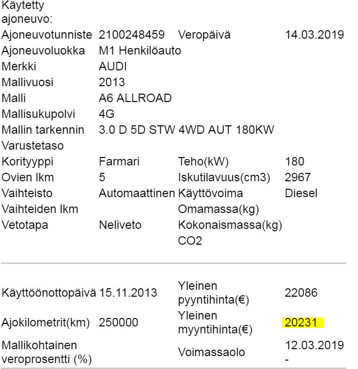 Belcarin autoverolaskurilla sain tuolle yksilölle laskettua veroja vajaat 6t.