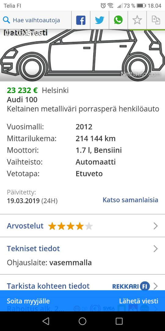 • Tuosta Kemin RS4-ilmoituksesta pitaa tietaa se, etta auto tuskin edes on oikeasti myynnissa, vaan omistaja lahinna kehua leuhottaa silla.
