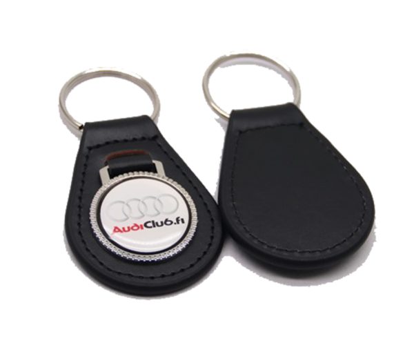 Keinonahkainen avaimenperä metalliosilla