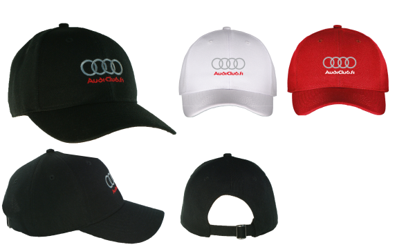 100% polyesteri. Koko: 57,5 cm AudiClub -brodeeraus edessä.