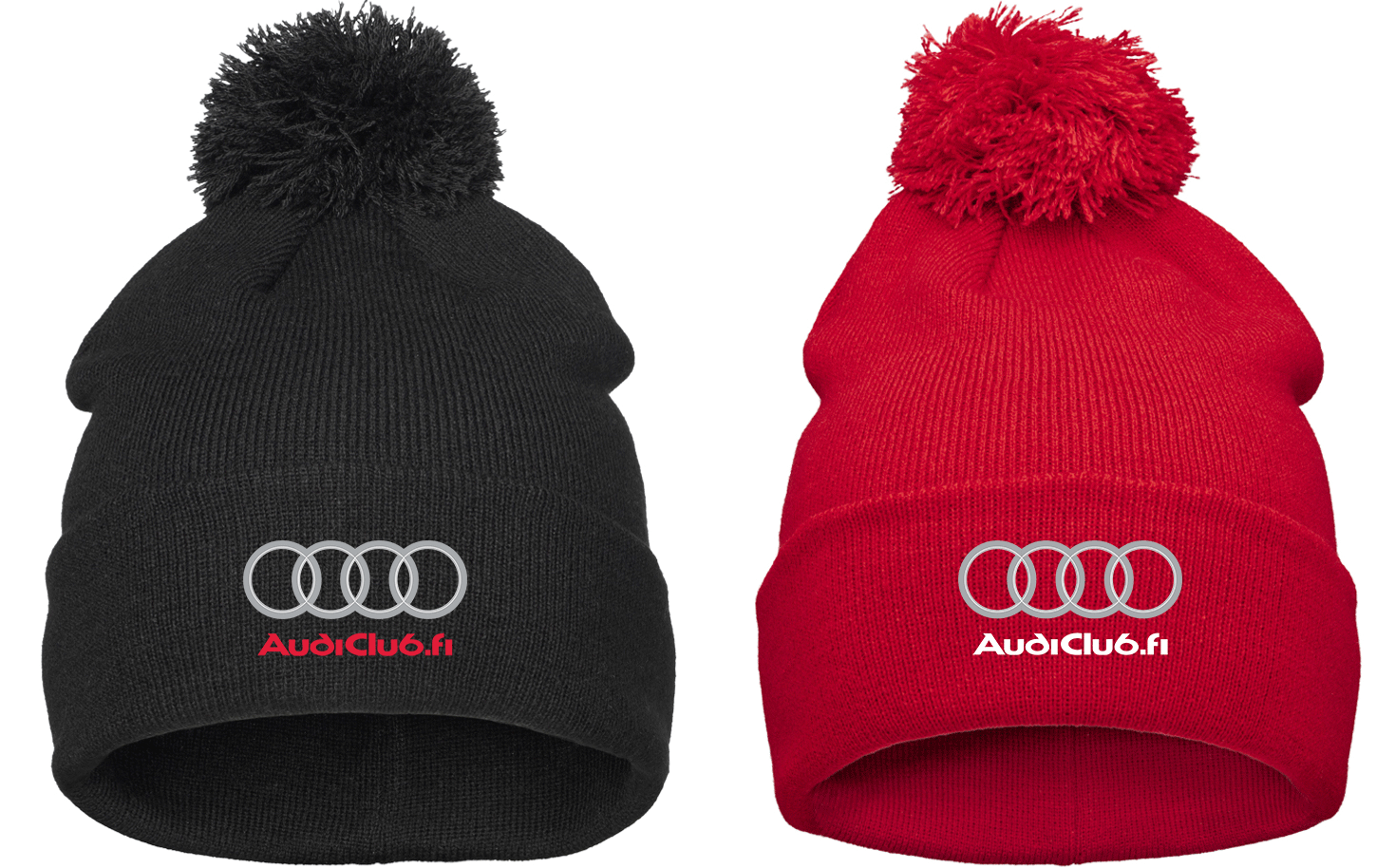 Reunasta käännetty neulospipo. 100% akryyli. AudiClub -brodeeraus edessä.